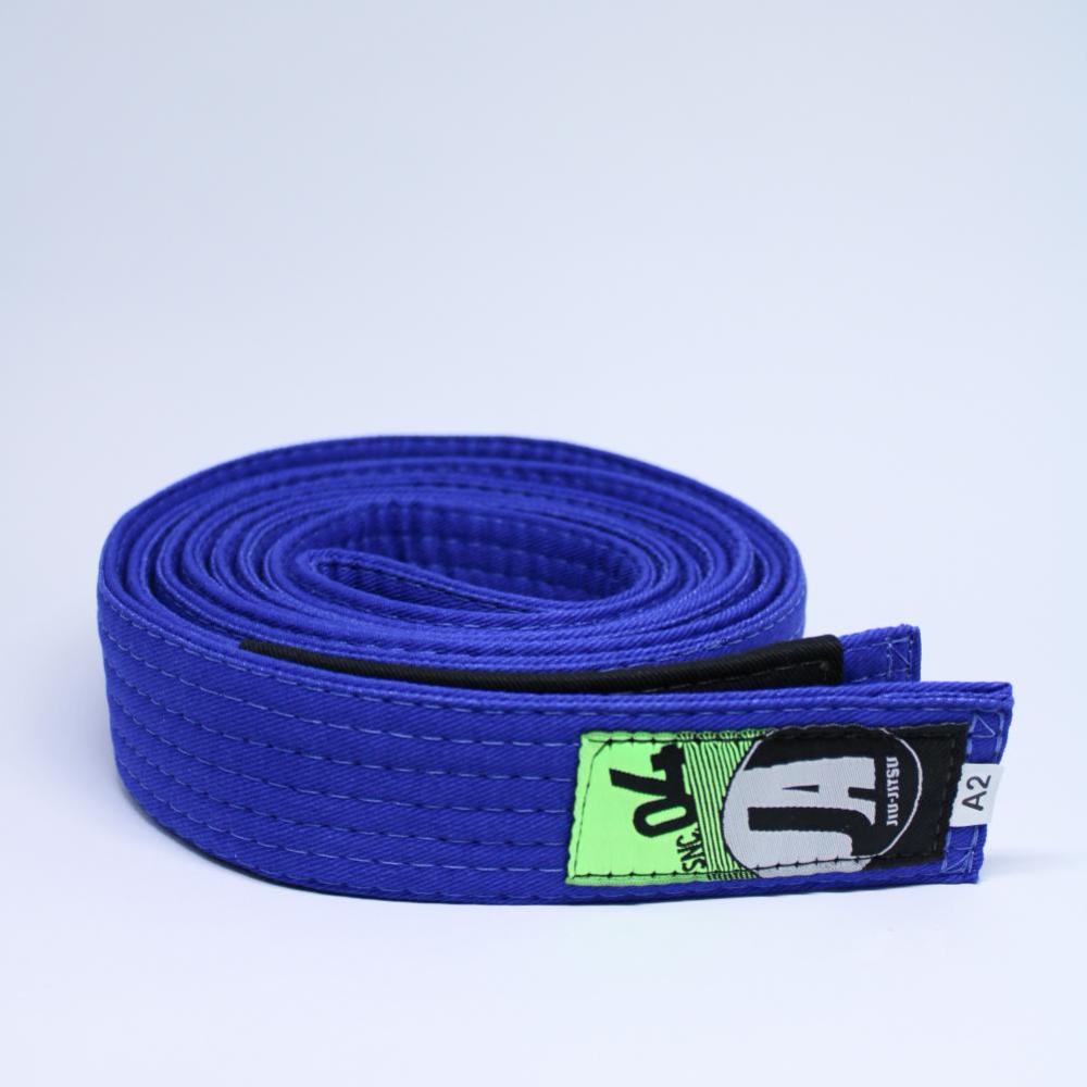 A faixa deve ser resistente, com largura entre 4 e 5 cm, na cor correspondente à graduação e com ponta preta (exceto a faixa preta, que possui ponta branca ou vermelha).